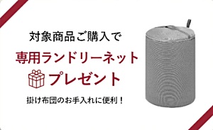 対象コンフォーター(オールシーズンズ、パーフェクト ウォーム EX、ライトコンフォーター リカバリー)購入で、専用ランドリーネットプレゼント!